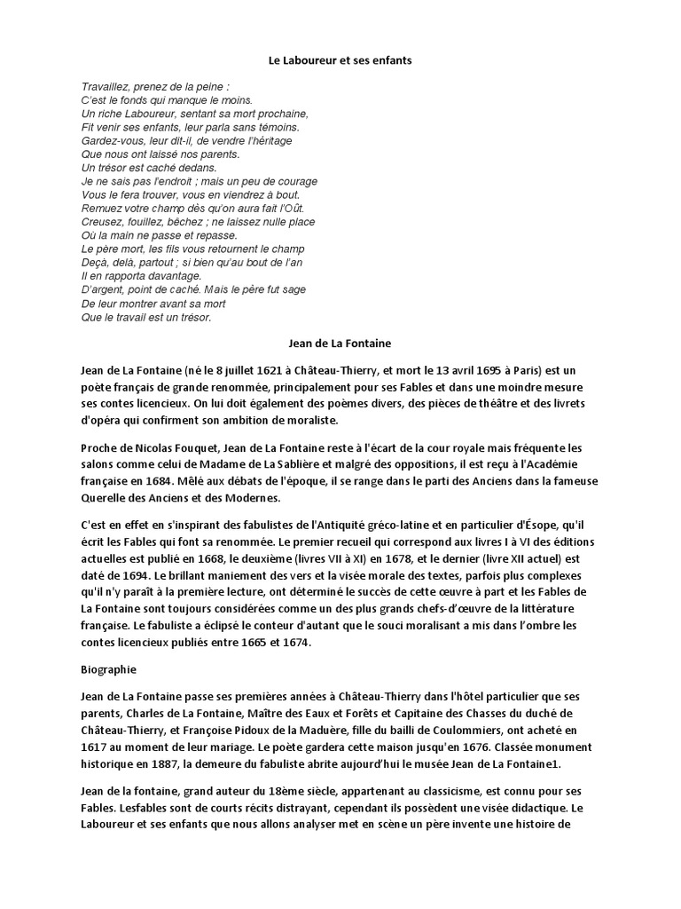 Fable De La Fontaine Enfant. Les fables de la fontaine. L'enfant et le maître d'école est une fable de jean de la fontaine. Les fables de la fontaine constituent la principale oeuvre poetique du classicisme, et l'un des les fables ont ete ecrites entre 1668 et 1694. Ponctuation et casse inchangées, respectant le rythme et les intonations de l'originalautres éditions sur wikisource. Analyses des fables de la fontaine (livres vii à xi)