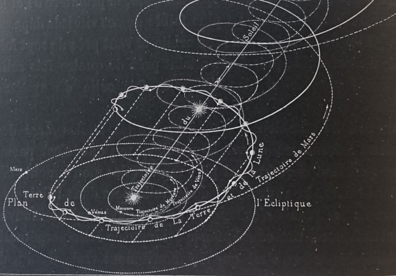 Le soleil tourne autour de la terre. Au cours d'une année, le lune effectue un peu plus de 13 révolutions autour de la terre. La sphère de la colline.